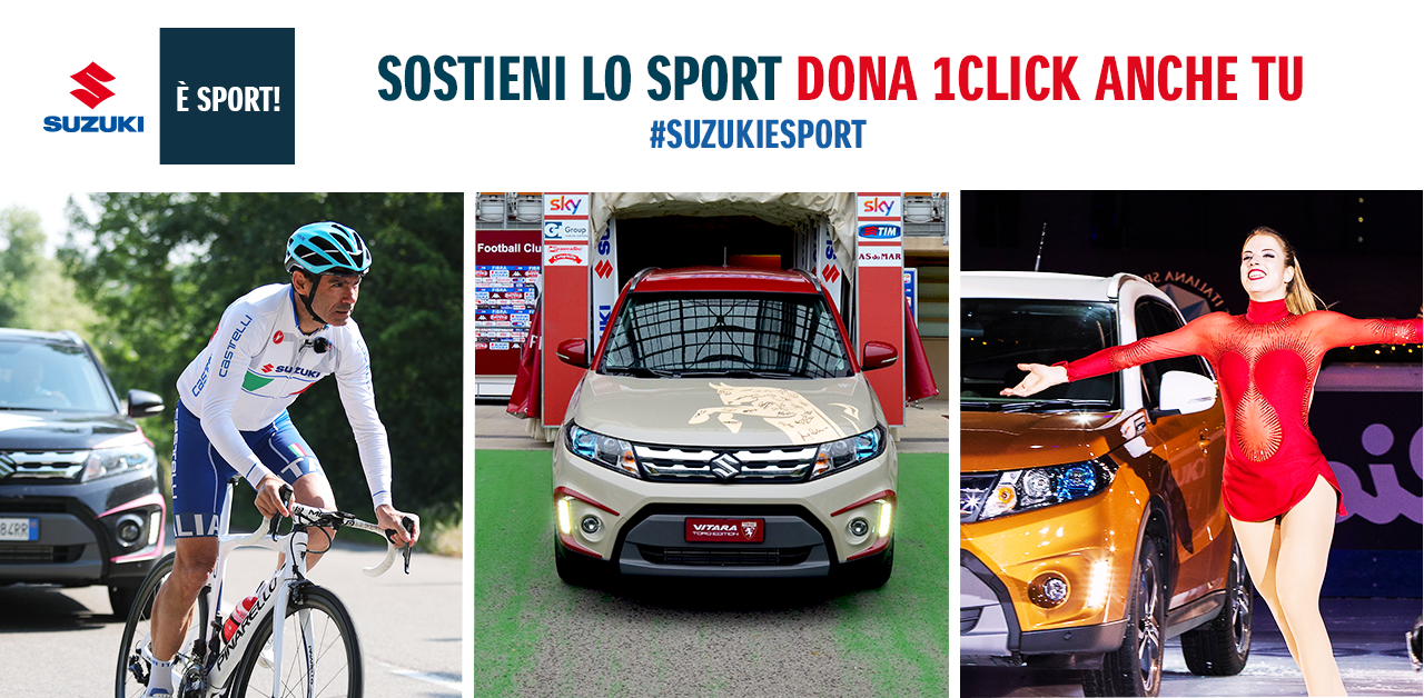 “Suzuki è Sport!” è una nuova, concreta dimostrazione della vicinanza del brand al mondo degli atleti, degli appassionati e dei tifosi che, grazie a 1ClickDonation®, siamo felici di aver aiutato a rendere possibile.